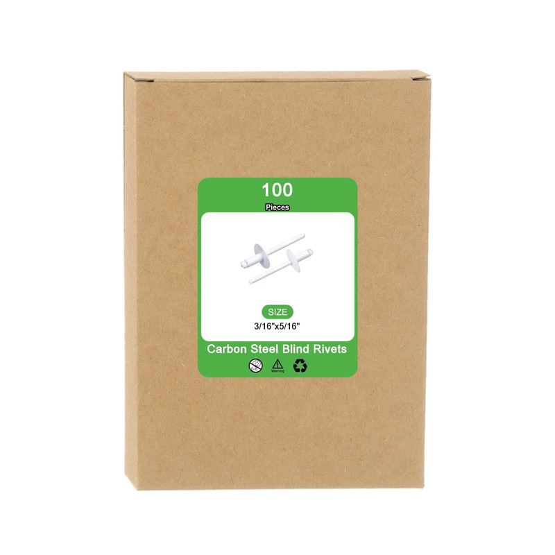 - [MATERIALS]: These blind rivets are made of carbon steel material, with a galvanized surface, high hardness, not easy to rust or deform, corrosion resistance, high strength, and excellent wear resistance. The surface of the rivet body is treated with baking paint, which has a good aesthetic decorative effect.