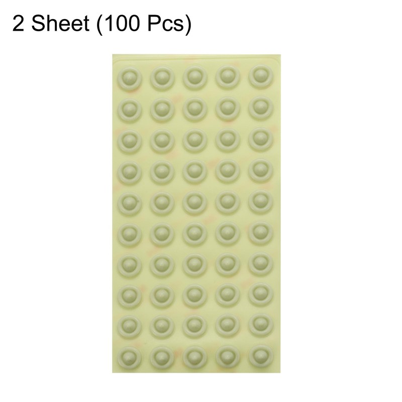 The pack includes 100pcs door stoppers wall protectors, each measuring 1/2inch(13mm) in diameter and 0.22inch(5.5mm) in thickness. One sheet contains 50pcs cabinet door bumpers.