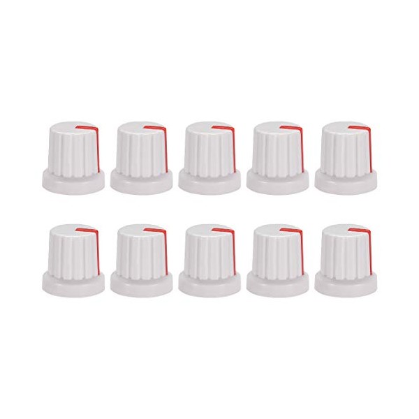uxcell 10Pcs 6mm Shaft Hole Knob for Speaker Effect Pedal Amplifier White Potentiometer Knob Red Mark