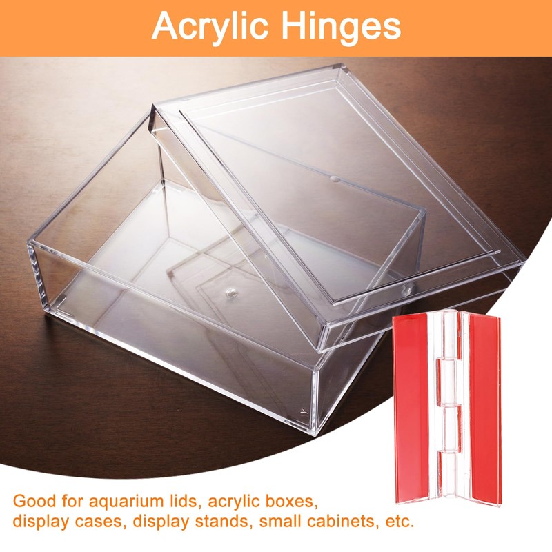 - [Wide Application] - The acrylic hinges are widely used for aquarium lids, acrylic boxes, jewelry boxes, acrylic display cases, glass boxes, display stands, small cabinets, drawer and DIY crafts.