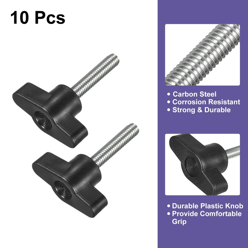- [Material] - The wing handle screw is made of carbon steel, while the knob is made of plastic, which is rust-proof, corrosion-resistant and oxidation resistant, durable and hard to break and deform, which prolongs the service life of the product.