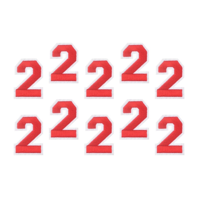 uxcell 10pcs Iron on Patch Embroidery Decoration Repair Patch Number Patch for Clothing Shoes Hat Backpack 48mm Width 2 Red