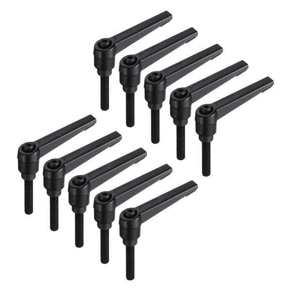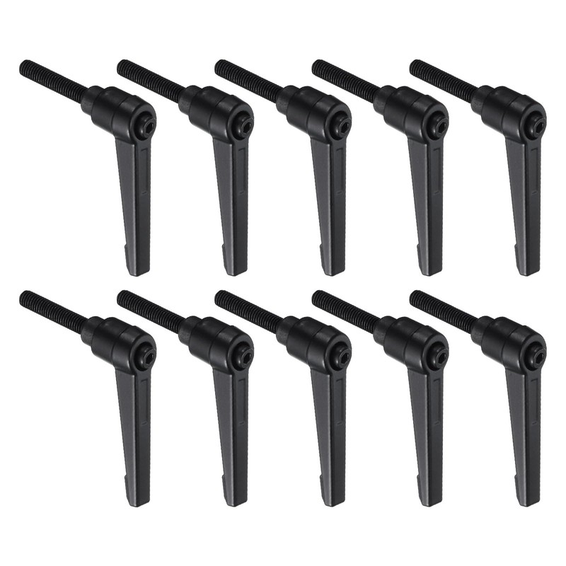 uxcell 10pcs Lever Adjustable Handles M6 x 32mm Metric Male Thread, Level Clamping Handle Hand Stud Knobs Rotating Screw Handles Bolts with Locking Lever, Black