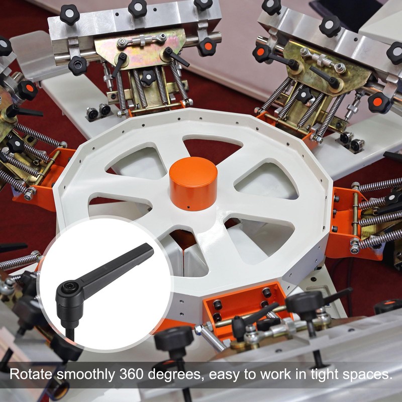- Adjustable Lever Handles: Standard metric thread dia.: M6 (1.0mm pitch); thread length: 32mm / 1.26"; lever length: 57mm / 2.24". The handles are particularly useful when the lever has a limited turning angle, making them perfect for applications that require frequent and quick adjustments and when working in confined areas.