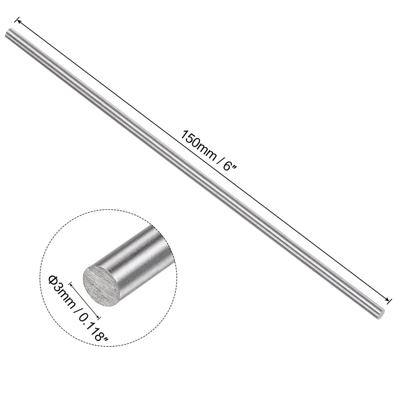 - Round Metal Rods: Diameter: 3mm / 0.118" (+/-0.05mm / 0.002"); length: 150mm / 6" (+/-5mm / 0.2"); hardness: HRC61~63; finish: polished. High-speed steel rod is with combination of hardness and toughness for wear resistance.