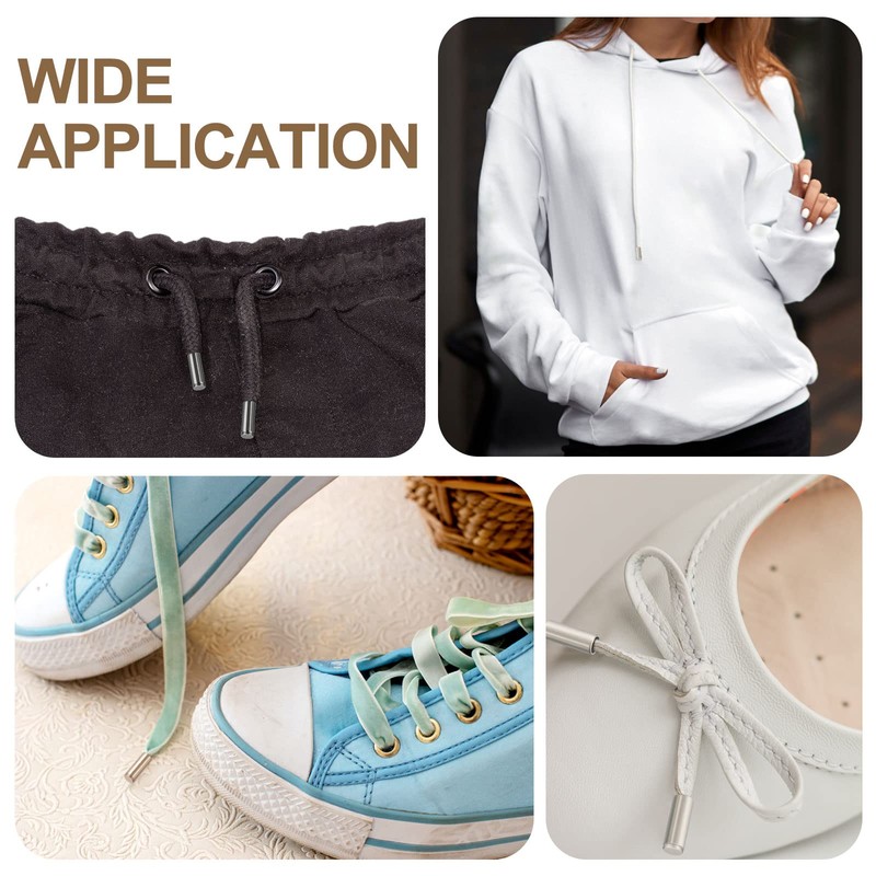 Applications: These shoelace ends are suitable for all kinds of shoelaces, down jackets, sweaters, casual pants, cotton clothes, jackets, etc. It can be used to repair frayed or damaged shoelace ends.