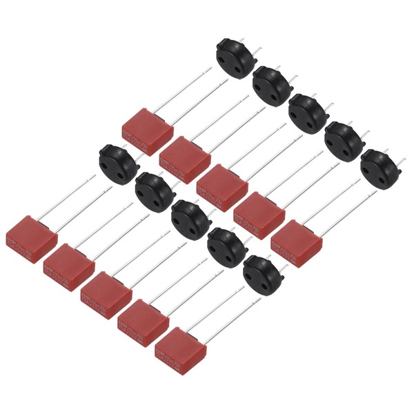 uxcell 10Set DIP Mounted Miniature Square Slow Blow Micro Fuse with Fuse Holder for Electronic Parts PCB LCD Repair, T-5A 5A 250V, Red