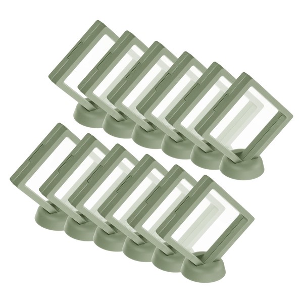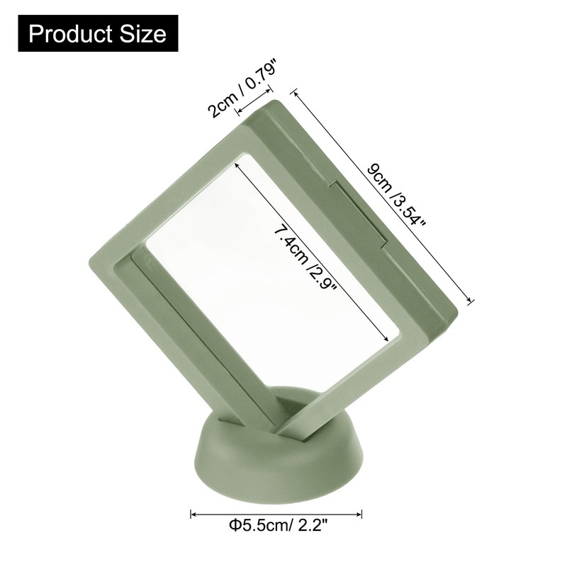 - Package Content: You will receive 12 pcs floating display case and stands. Frame Size: 3.54"L x 3.54"W x 0.8"H; Display Screen Size: 2.9"L x 2.9"W. Color: Light Green
