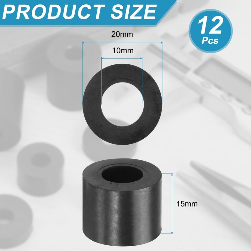 - Size: 12 Pcs rubber spacers vibration damping pads, 20mm OD x 10mm ID x 15mm Thickness.