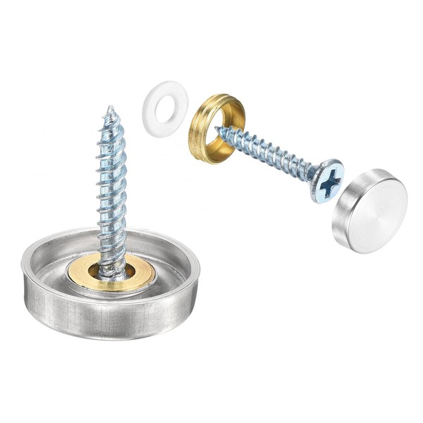 uxcell 12 Pcs Screw Covers Caps, 304 Stainless Steel Mirror Screws Decorative Caps Cover Nails, Mirror Screws Fasteners for Sign Advertising Hardware Construction, 18mm Diameter, Silver