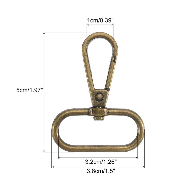 - [Detachable Snap Hook] - 12 Pcs Swivel Clasp Hooks. Total Length: 5cm/1.97 inch; Total Width: 3.8cm/1.5 inch; Inner Length: 3.2cm/1.26 inch; Hook inner diameter: 1cm/0.39 inch Color: Bronze; Surface finished: Plating. Please carefully measure the applied or hanging dimensions and weights before installing, and don't load-bearing too heavy things to avoid them falling off.