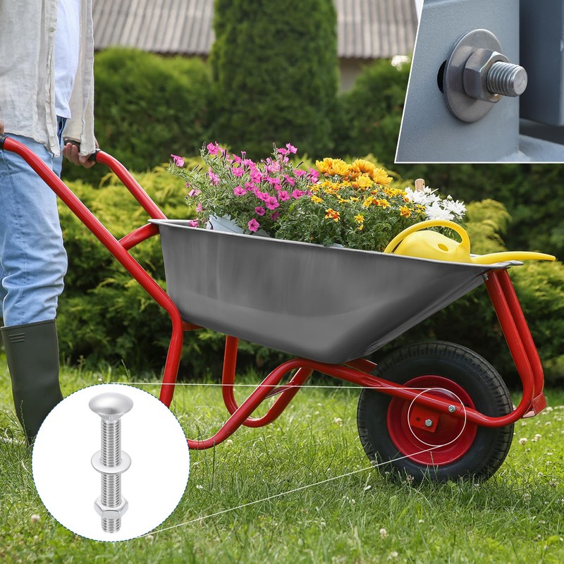- [Wide Application] - Carriage bolt sets are used to fix metal to wood. Widely used in homes and offices, both indoors and outdoors, such as securing headboards, footboards, doors, bed frames, furniture, TV, engineering, or other DIY projects.