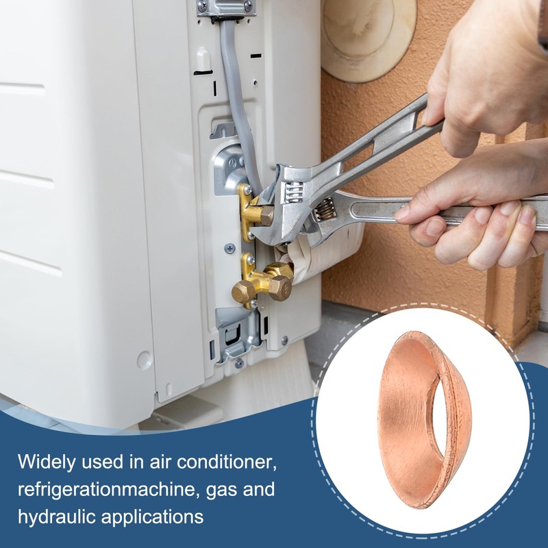 - [45 Degree Flare]: The copper flare gasket is used for sealing 45-degree flare pipe fitting. Widely used in air conditioners, refrigeration machines, gas, and hydraulic applications