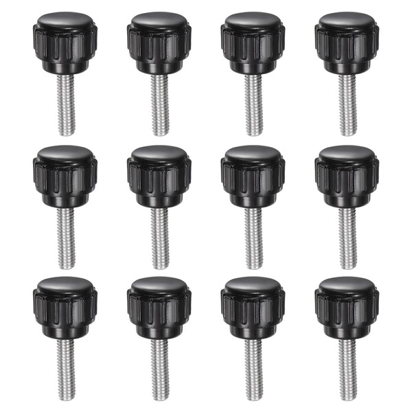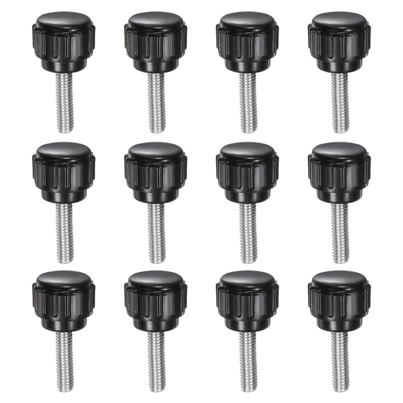 uxcell 12pcs Knurled Clamping Knobs M4 x 16mm Metric 304 Stainless Steel Male Thread Thumb Screw on Type 14mm Plastic Round Head Threaded Hand Bolt Stud Knobs Black