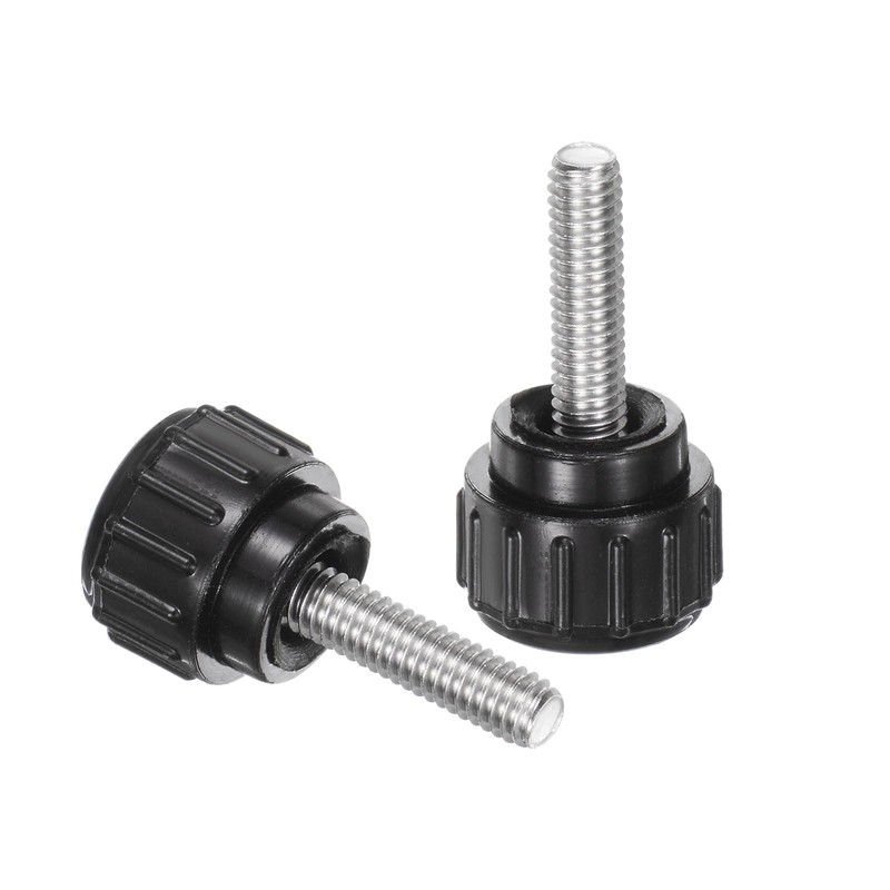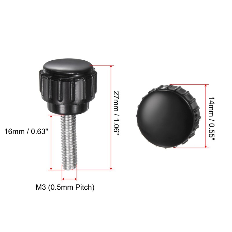 • Standard Thread Size: M4 (0.7mm Pitch); Thread Length: 16mm / 0.63"; Knurled Head Diameter: 14mm / 0.55"; Total Height: 27mm / 1.06". The screws are neat and clear, the force is even, and it is not easy to slip.