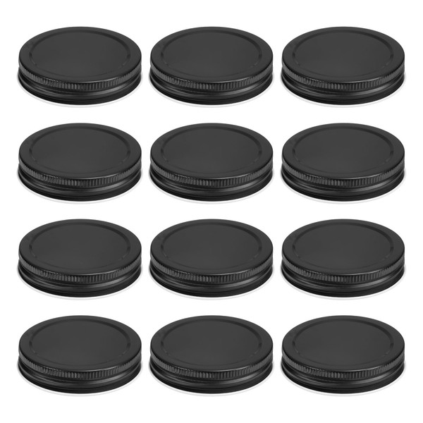 uxcell 12Pcs Regular Mouth Mason Jar Lids, Mason Canning Jar Lids with Airtight Seal, Mason Storage Covers Caps, Black