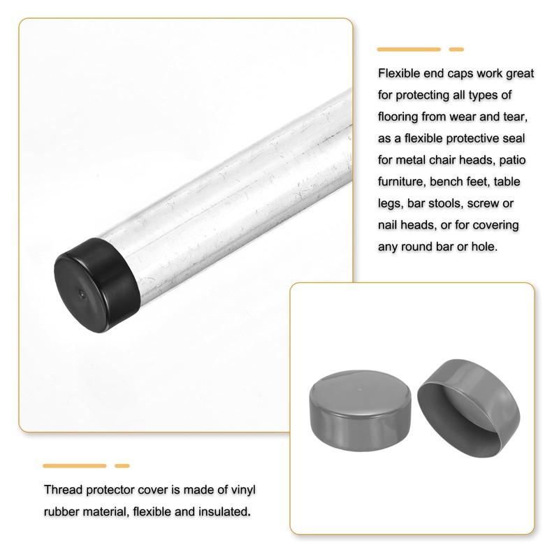 Flexible end caps are suitable for all round tubes, round rods or cylindrical objects in the home, outdoors, bolts and screws, mechanical equipment, fence railing posts, etc.