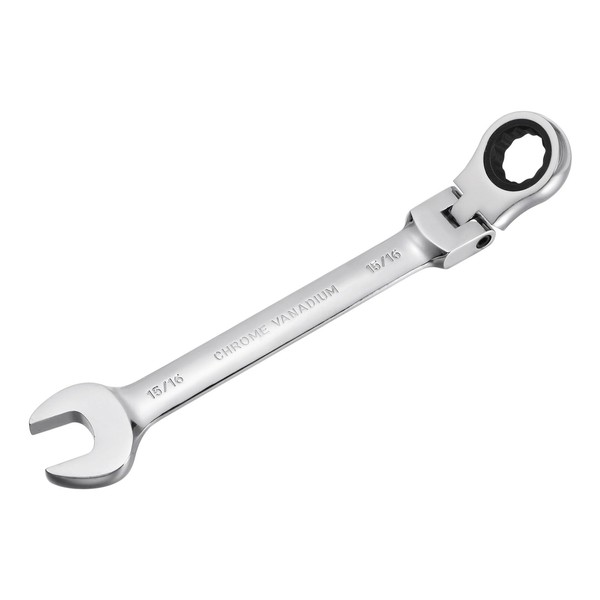 uxcell 15/16 Inch Flex-Head Ratcheting Combination Wrench SAE 72 Teeth 12 Point Ratchet Box Ended Spanner Tools, Cr-V