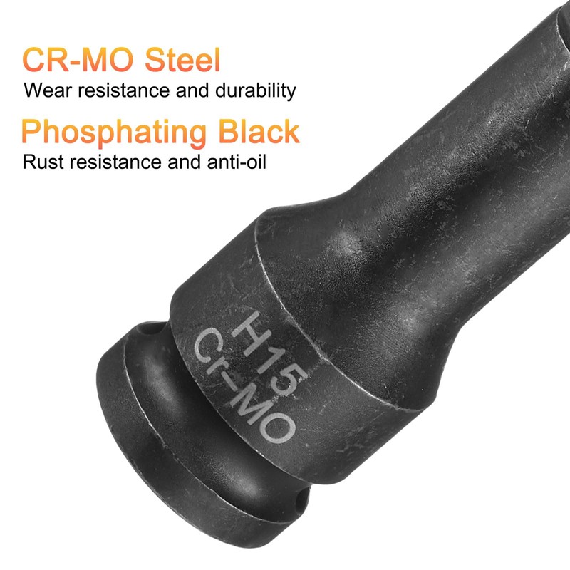uxcell 15mm Hex Impact Bit Socket H15 1/2" CR-MO Steel Phosphate Black Impact Drive Hex Bit Sockets Lengthen Hex Screwdriver Socket Adapter for Auto Mechanics Work Repair Maintain