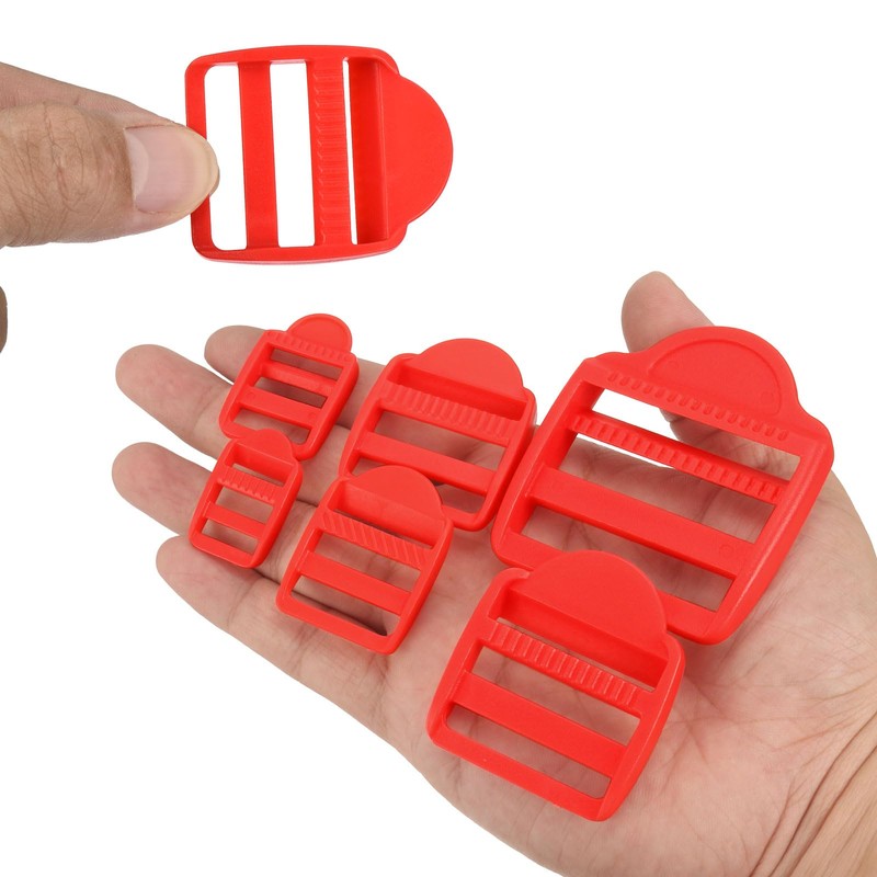 uxcell 16Pcs Plastic Ladder Slider, 5/8" (15mm) Red Adjustable Lock Buckles Tension Lock Tri-Glides for Belt Backpack Straps Part Replacement