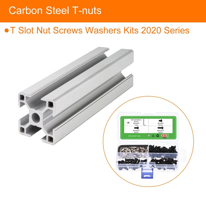 uxcell 181Pcs M5-0.8 T-Nuts Screws Assortment Kit for 2020 Series with Hexagon Socket Screws Wrench