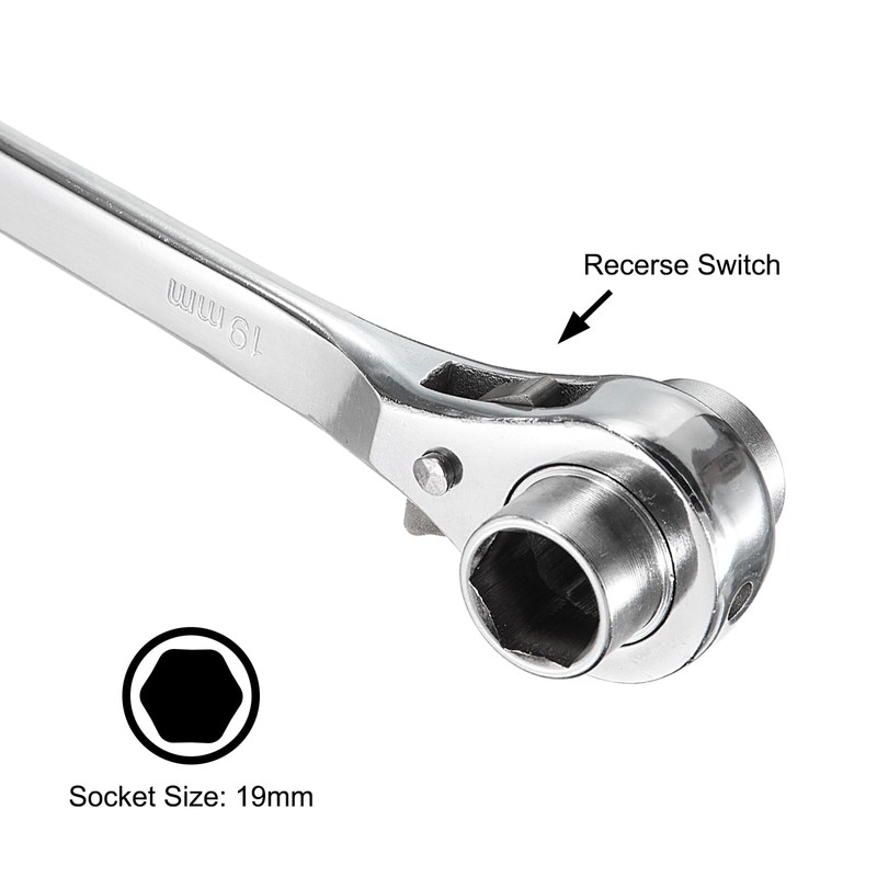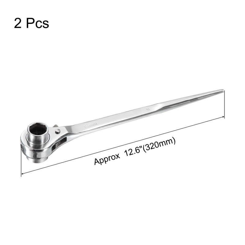 uxcell 19 x 21mm Hexagon Scaffold Podger Ratchet Spanner Ratcheting Socket Wrench Tool (Silver Tone) 2pcs