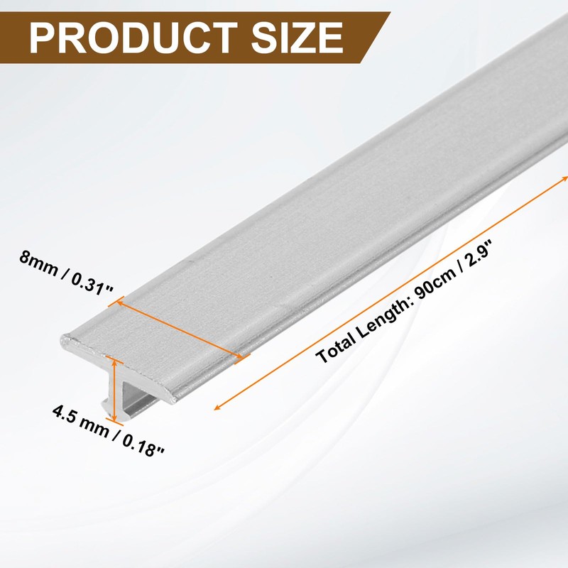 - [SIZE & PACKAGING]: The length of the flooring gap trim is 0.9 Meters / 2.9 Feet, the size is 8 x 4.5 mm / 0.31 x 0.18 Inch (L x H), the thickness is 1 mm / 0.04 Inch, the package includes 1pcs of t-molding floor transition strips