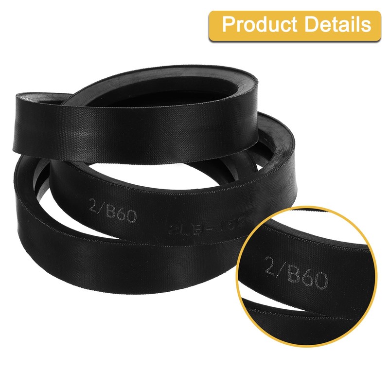 uxcell 2/B60 Classic Wrapped 2 Banded V-Belt, 63" Outside Circumference Wrapped 2 Banded Industrial Rubber V-Belt B Profile V-Belt for Industrial Machinery Equipment, Black