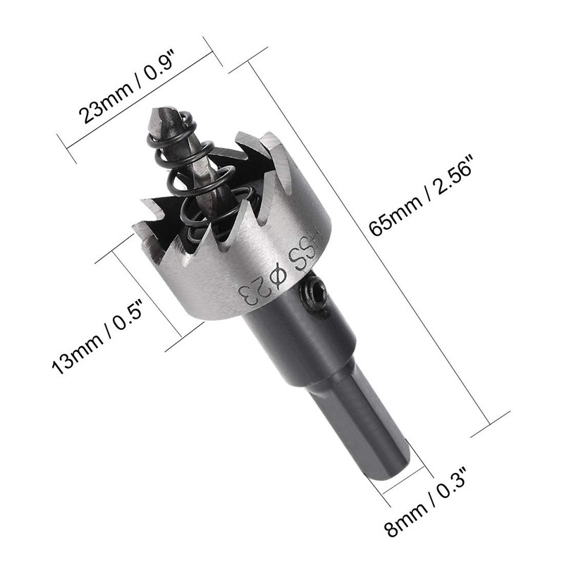 - 23mm Hole Saw cut clean, round holes in iron, aluminium, alloy, plastic, wood, etc..