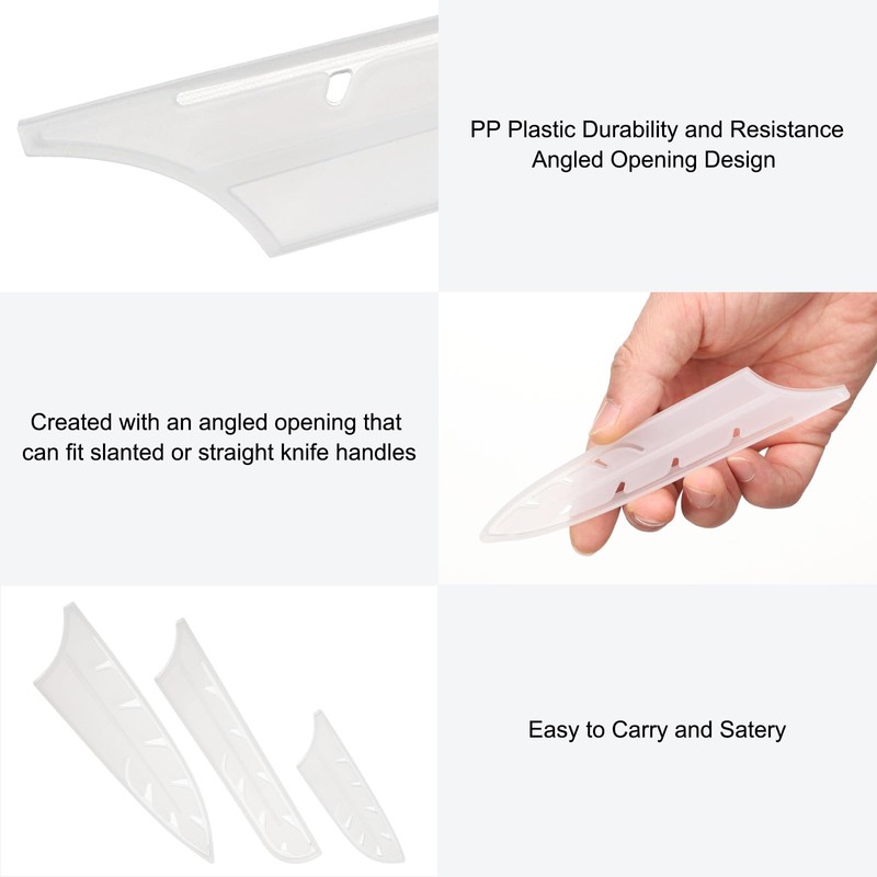 PP Material - The knife cover is made of PP (Polypropylene) plastic material, which is famous for its durability and resistance to wear, ensuring that it can be used over an extended period without the risk of deformation