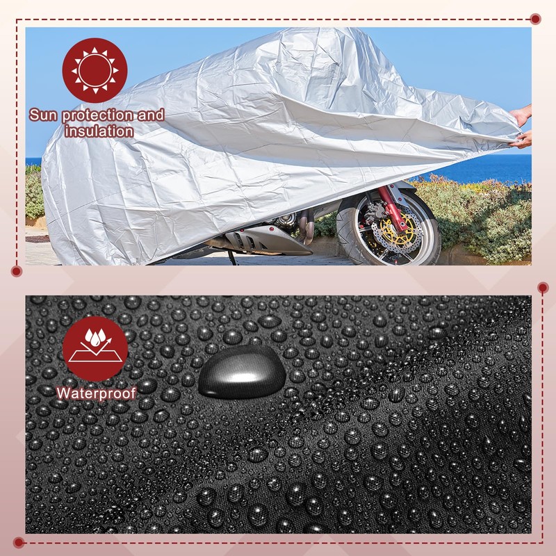 - 素材 - 自転車カバーはオックスフォードクロス製で、耐撕裂性があります。高密度の生地は防塵、防水、日よけ、断熱性があり、あらゆる天候に対応できます。