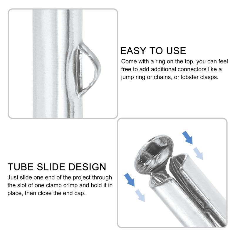 - WHAT YOU GET - You will get 200pcs of tube slider clasps to meet your various uses: Silver Tone Color, Slide End Clasp Overall Size: 4x16mm/ 0.16"x0.63" (W*L).