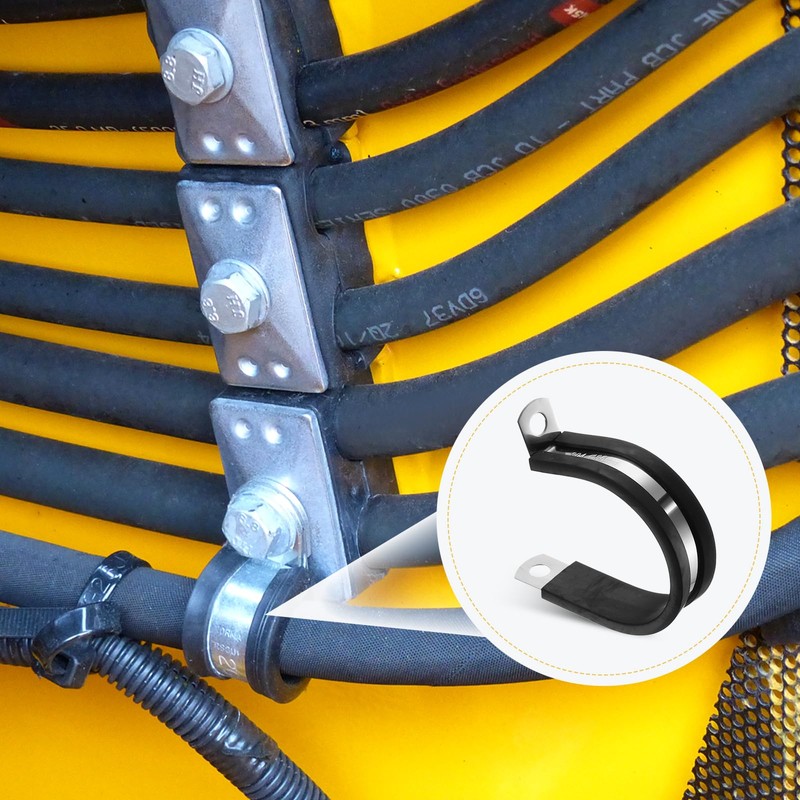 - Durable Material: The cable clamp is crafted from 304 stainless steel and EPDM rubber cushioned pads for durability, it is oil-proof, waterproof, anti-oxidation, rust and corrosion-resistant, and the elastic rubber material provides effective buffering and insulation properties.
