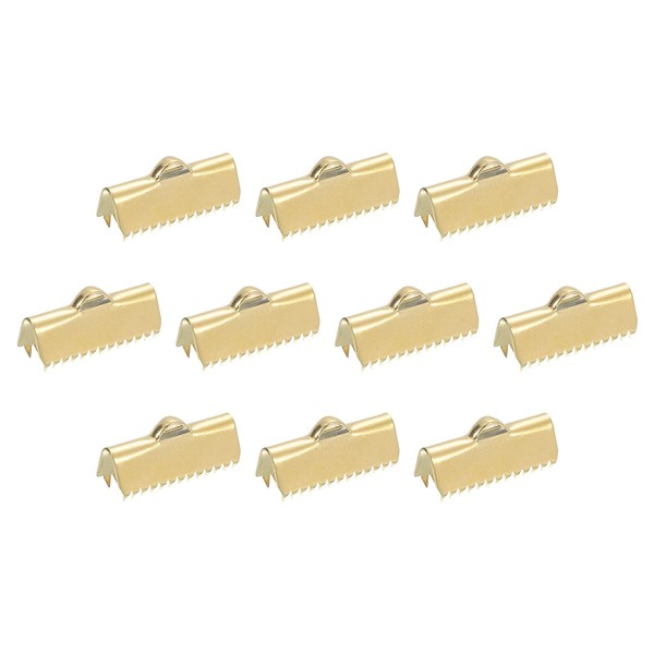 uxcell 25Pcs Ribbon End Crimp Clamps, 20mm Pinch Cord End Clasps Stainless Steel Curled Bead Clasp for Ribbon Lace Bookmark Ends Keychain DIY Making, Gold