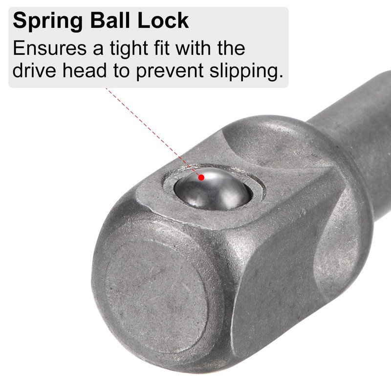 1/4" hex shank socket adapter provides a secure, locking extension to your existing tools. Provides extra length to get into hard-to-reach spaces. Anti-drop spring ball lock ensures a tight fit with the drive head to prevent slipping during use.
