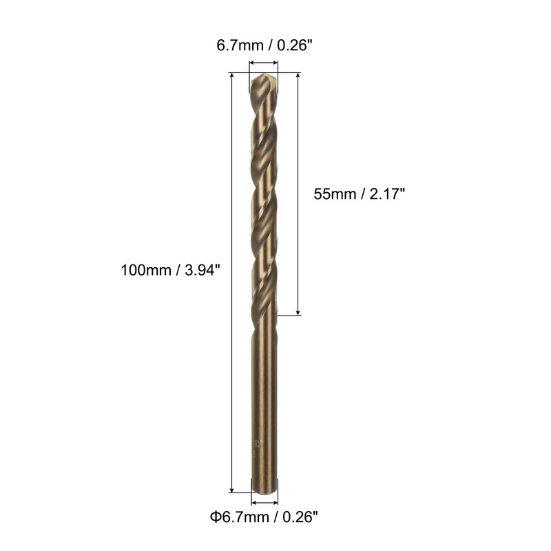 uxcell 2pcs 6.7mm Drilling Dia Straight Shank High-Speed Steel Cobalt Metric Twist Drill Bit Rotary Tool