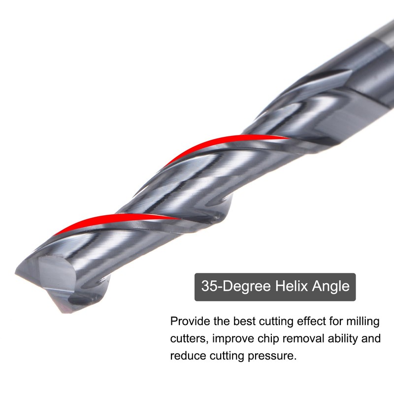 The helix angle of this milling cutter is 35 degrees. It provides the best cutting effect and improves chip removal during cutting, thereby improving cutting efficiency and surface quality. This angled design can also reduce the load on cutting and machine tools during processing, improve heat dissipation performance, and extend the service life of cutting tools and equipment.