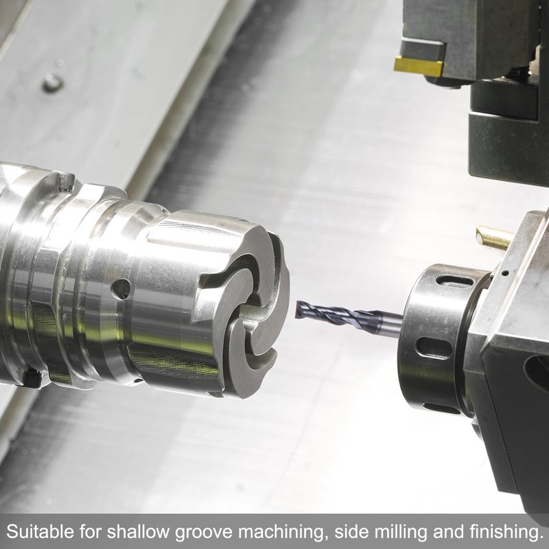 • Widely Applications: Suitable for cutting carbon steel, malleable cast iron, alloy steel, die steel, etc. For shallow groove machining, side milling and finishing. Use on CNC machining centers, engraving machines and other high-speed CNC machine tools.