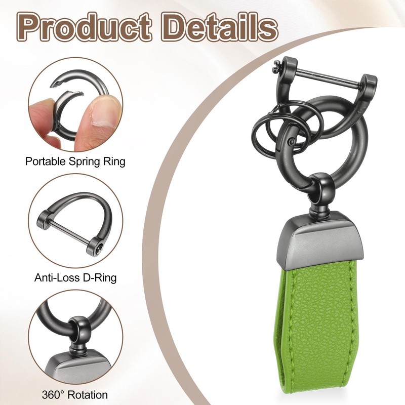 uxcell 2Pcs Car Key Chain, Zinc Alloy Leather Car Keychain Anti-lost D-Ring Key Chain Fob 360 Degree Rotatable Decorative with Screwdriver for Men and Women, Metallic Black/Green