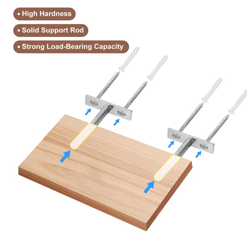 - [Floating Shelf Bracket] - 129mm x 70mm x 15mm/5.08" x 2.76" x 0.59"(L*W*H) in overall size, 10mm x 125mm/0.39" x 4.92"(D*L) in rod size. The size of the shelf board should be larger than 100mm x 16.5mm(Width*Thickness)