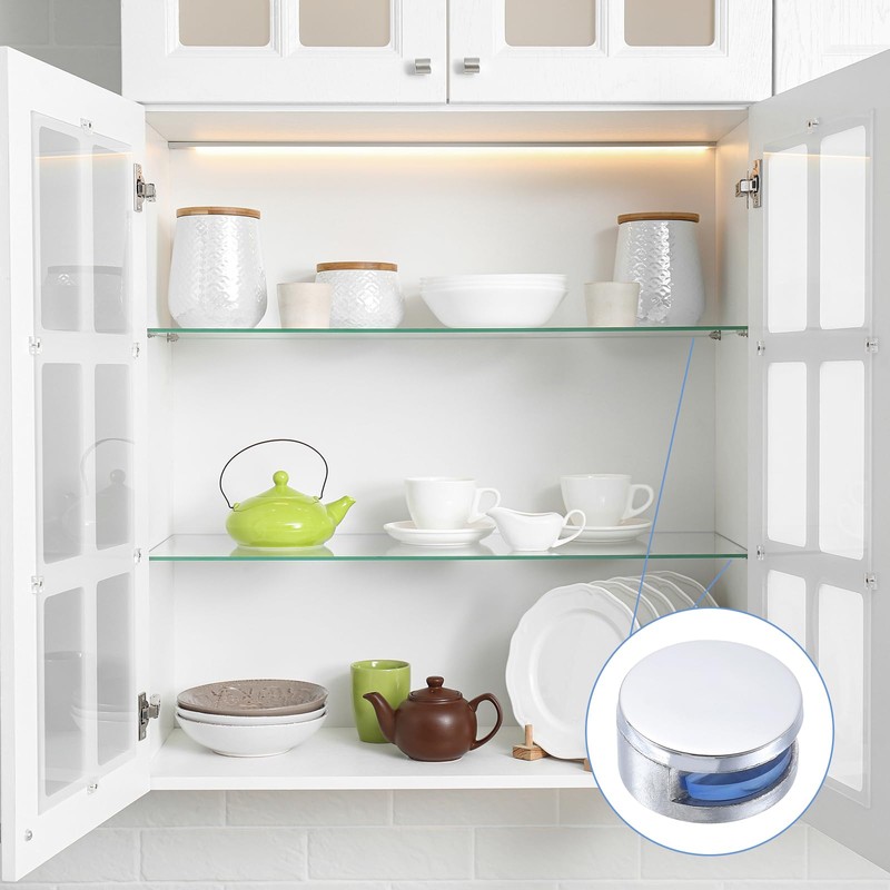 - [WIDE APPLICATION]: The glass shelf wall bracket can be used to install various glass furniture, glass cabinets, glass wine cabinets, glass shelves, etc.; it is also suitable for wooden furniture such as shelves, bookcases and display cabinets.