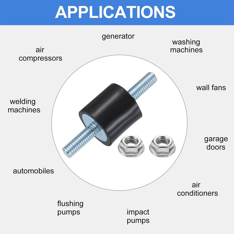 Material - The shock absorber mount is made of rubber and zinc-plated metal, and the flange nut is made of 201 stainless steel. The rubber and metal are firmly bonded and not easy to fall out. The vibration isolator mount is strong, wear-resistant, corrosion-resistant, not easy to break or rust, the thread is smooth and burr-free, and can be used for a long time.
