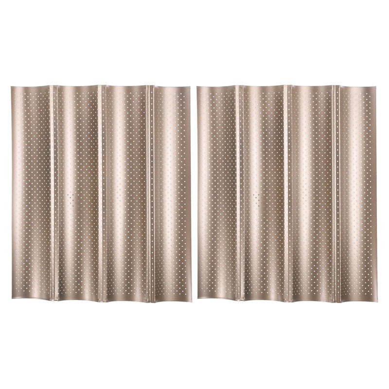 uxcell 2Pcs Perforated French Bread Baking Pan, 15" x 13" Toast Molds Tray, 4 Wave Loaves Baking Tray for Baking Loaf Bread (Gold Tone)