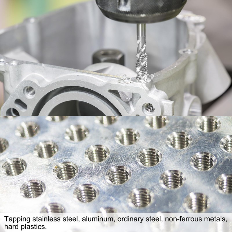 Spiral flute threading tap is suitable for processing blind holes and sticky materials. Used for drilling and tapping stainless steel, aluminum, die steel, ordinary steel, non-ferrous metals, and hard plastics.