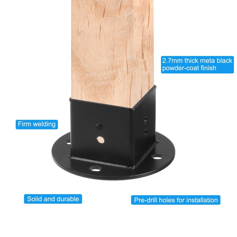• Quality Material - The post base is made from 2.7mm thick carbon steel, ensuring strength and durability. It features a black powder-coat finish that provides protection against rust and ensures long-term use in various outdoor conditions. The versatility of this adjustable feature makes it suitable for a wide range of applications.