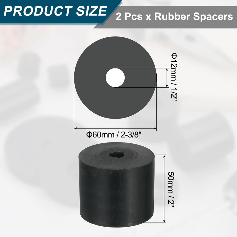 - [Package and Size]: Overall Size: 60 x 12 x 50-mm / (2-3/8 x 1/2 x 2-inch) (OD*ID*Thickness); Package Content: 2 Pcs x Rubber Spacers