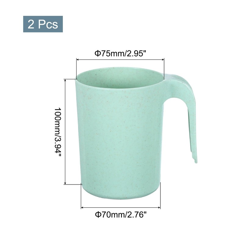 - [Size&Package] - Color: Green; Material: PP; Cup Mouth Dia.: 75mm/2.95"; Overall Size: 70x100mm/2.76" x 3.94"(Bottom Dia.*H); Package Content: 2Pcs x Wheat Straw Cups.