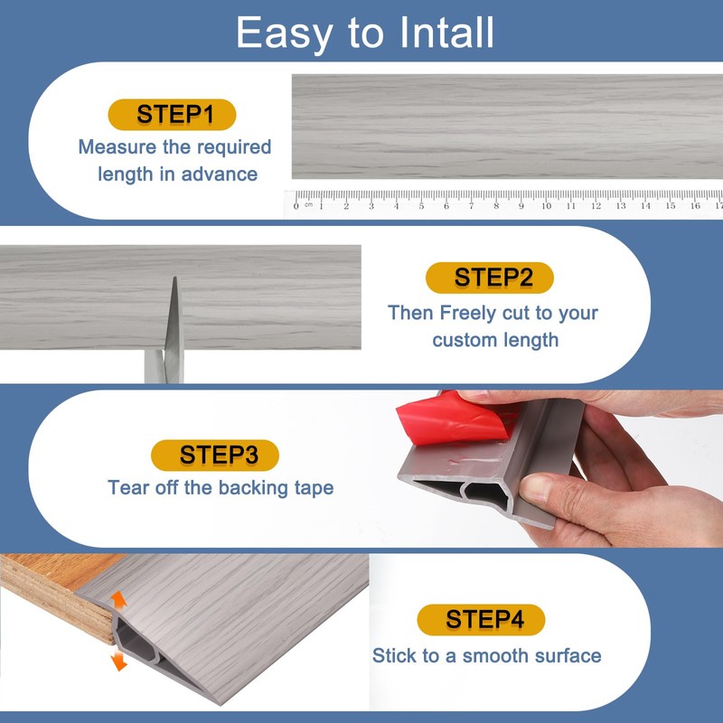 - [EASY TO USE]: The vinyl floor gap cover strips are simple to use. Just randomly cut the decorative strip to the length you want according to the length of the stairs, then tear off the protective film on the back of the tape, stick it on a clean and dry surface, and press it hard. It will not fall off easily after installation