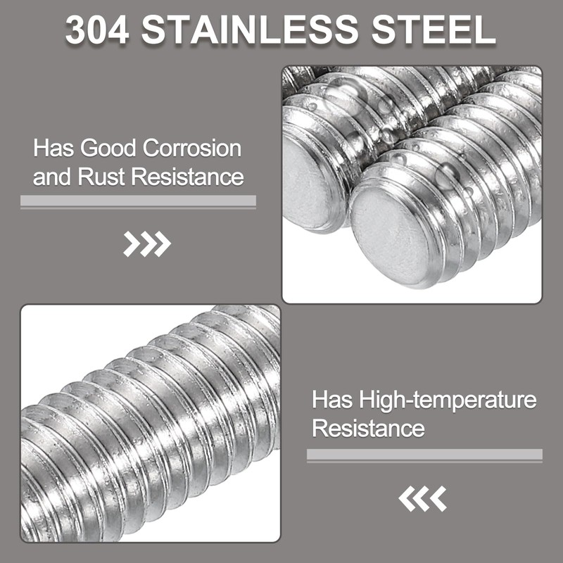 - [Material] Made of 304 stainless steel, the fully threaded rod has good corrosion and rust resistance, it has high-temperature resistance, good ductility, and low magnetic permeability for long service life