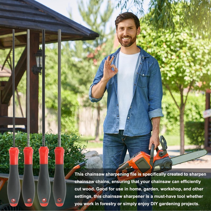 - [Application] - This chainsaw sharpening file is specifically created to sharpen chainsaw chains, ensuring that your chainsaw can efficiently cut wood. Good for use in home, garden, workshop, and other settings, this chainsaw sharpener is a must-have tool whether you work in forestry or simply enjoy DIY gardening projects